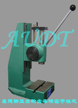 手扳壓力機因為其安全方便性受到客戶的認(rèn)可,用于裝配線,成形線,壓裝行業(yè),裝配行業(yè)等等。我們公 司主要針對客戶的要求定制多種系列化的手扳壓力機,有大噸位型的,精密型的,棘輪式的,自鎖式的, 普通型的,齒輪齒條式,連桿式,增力式等等。