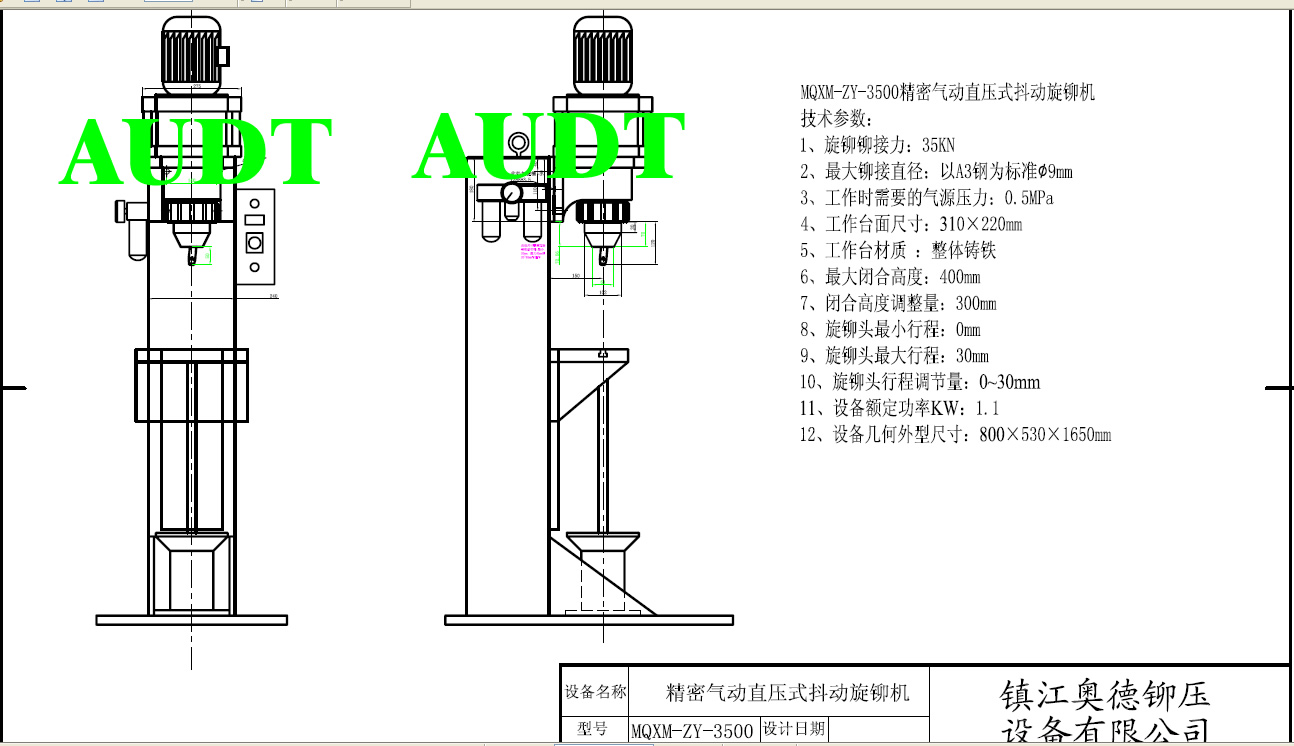 8、旋鉚頭小行程:0mm
